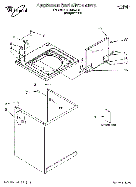 Parts for Whirlpool LXR6432JQ3: 01 - Top And Cabinet Parts