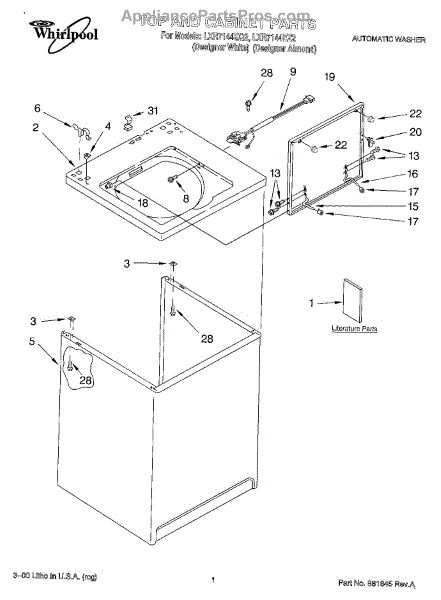 Parts for Whirlpool LXR7144EZ2: 01 - Top And Cabinet, Literature Parts