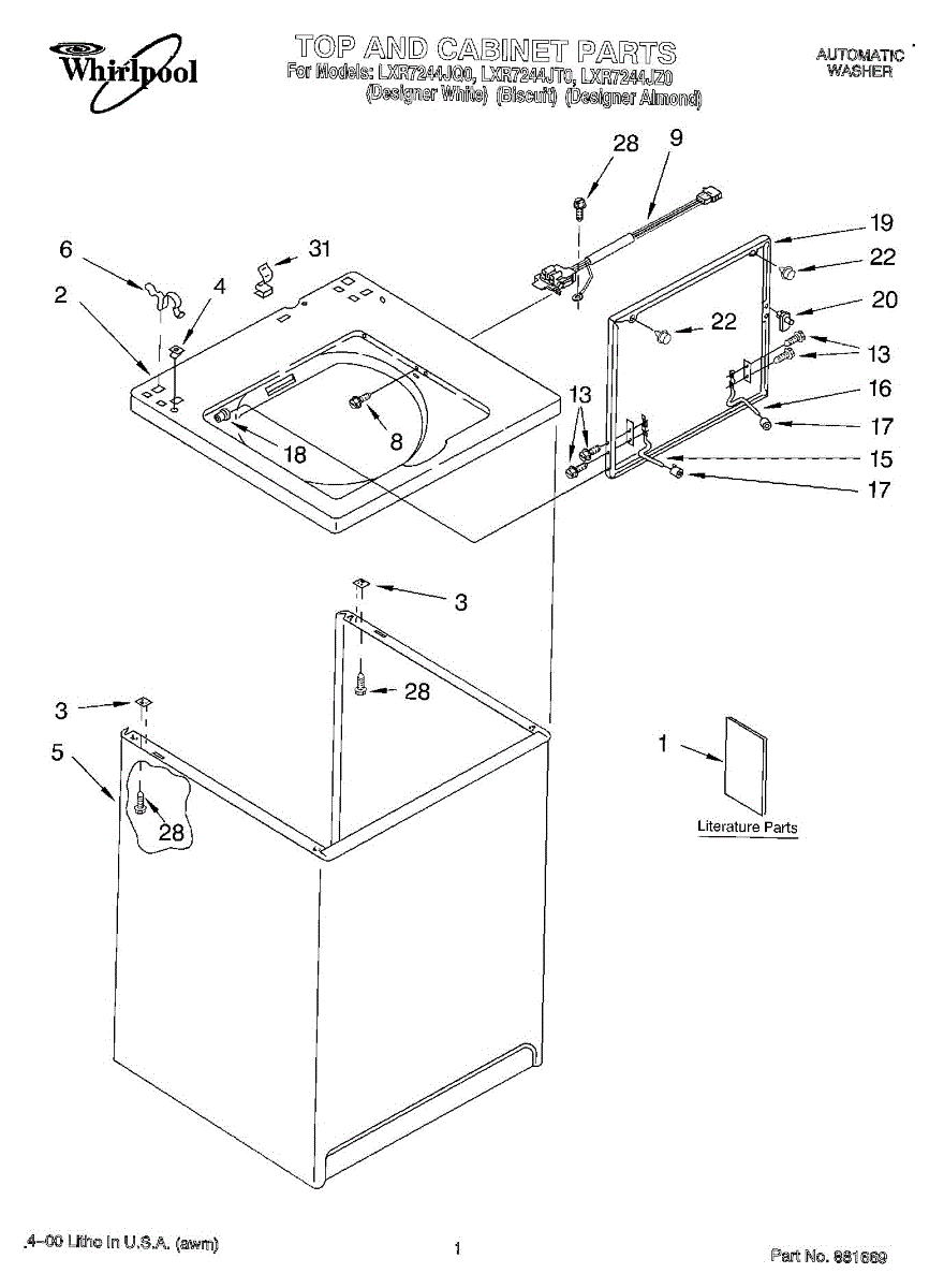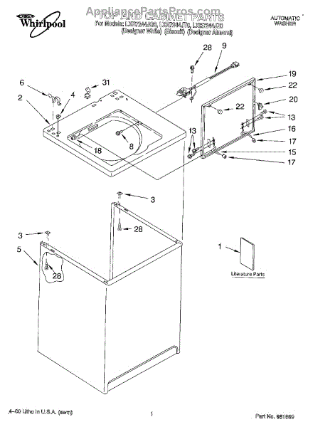 Repair manual for top loading automatic direct drive washing machines made by Whirlpool. Covered brands include Whirlpool, Sears, Kenmore, Kitchen Aid, Roper, and Estate. Easy to follow photographs and step-by-step repair procedures.