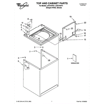 White outer cabinet shell for your washer. Covers the internal components and frame. Replace if cracked, dented, rusted, or cosmetically damaged.