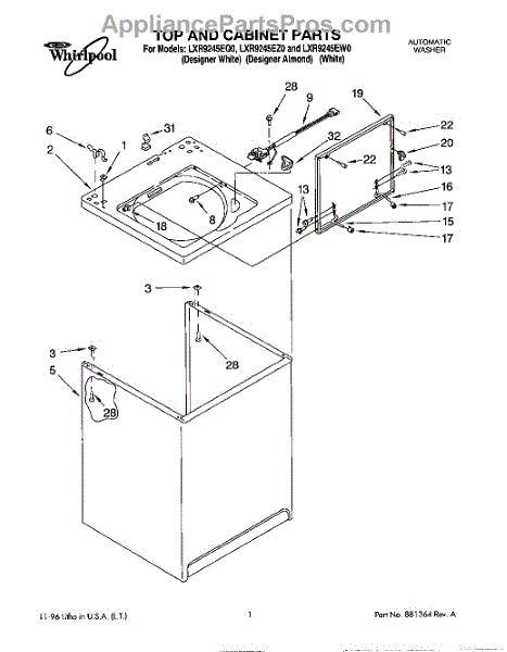 Parts for Whirlpool LXR9245EZ0: 01 - Top And Cabinet Parts