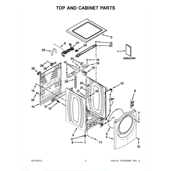 This top panel is the exterior upper cover that protects internal washer parts and gives the appliance a finished look. It restores a secure mounting surface for the control area and helps keep water and debris out of the cabinet. What it does