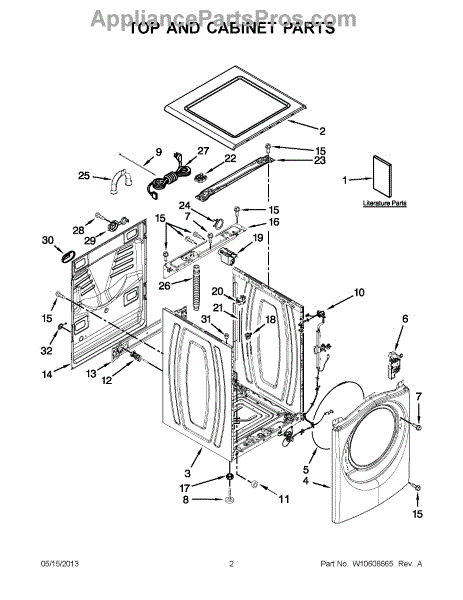 The Drain Hose is an OEM replacement part for Whirlpool washing machines. Located at the rear base of the unit, this flexible vinyl hose routes wash water out of the tub and to household drainage pipes. Causes involve regular flexing weakening hose material integrity over many years. Mineral buildups may also restrict water flow within. Symptoms of a problematic drain hose include:
