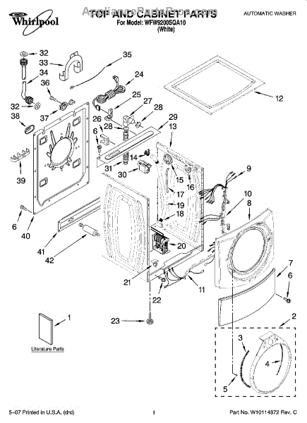 This outer drain hose routes wastewater from your washer to the household standpipe or sink. Replacing a cracked, kinked, or clogged hose restores proper draining and helps reduce leaks at the back of the appliance.