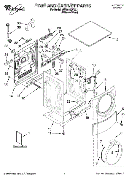 Parts for Whirlpool WFW9300VU03: 01 - Top And Cabinet Parts