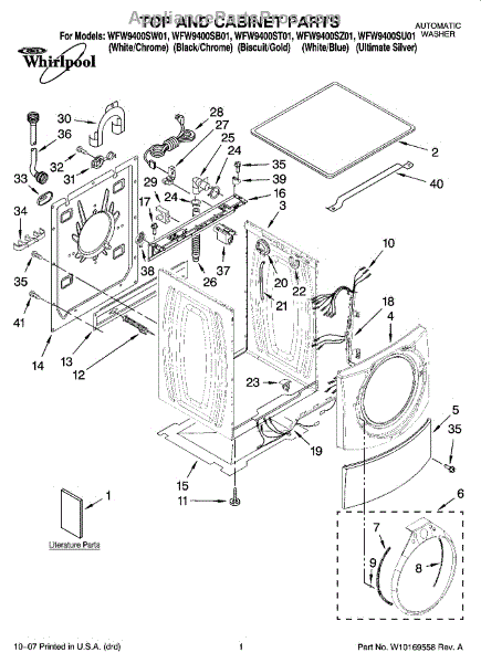 Parts for Whirlpool WFW9400SW01: 01 - Top And Cabinet Parts