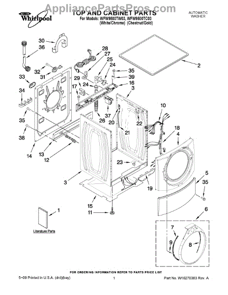 Parts for Whirlpool WFW9500TW03: 01 - Top And Cabinet Parts