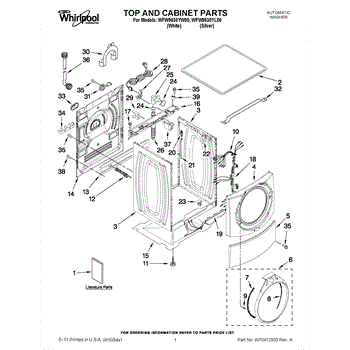 This outer drain hose routes wastewater from your washer to the household standpipe or sink. Replacing a cracked, kinked, or clogged hose restores proper draining and helps reduce leaks at the back of the appliance.