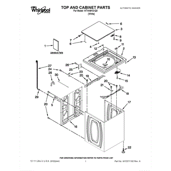 Replacement top for a 27-inch laundry appliance. Restores a secure, finished cover for the cabinet, protecting internal components and improving the appliance's appearance after damage or wear. What it does: