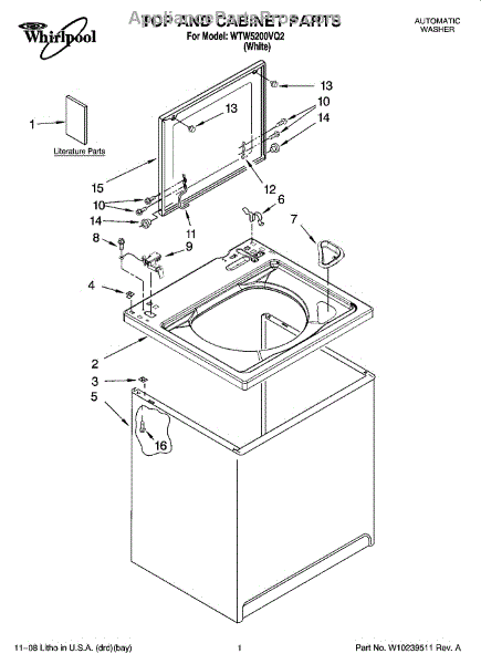 Repair manual for top loading automatic direct drive washing machines made by Whirlpool. Covered brands include Whirlpool, Sears, Kenmore, Kitchen Aid, Roper, and Estate. Easy to follow photographs and step-by-step repair procedures.