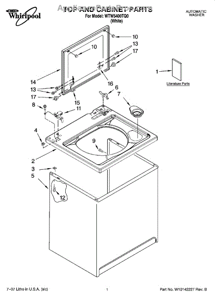 Repair manual for top loading automatic direct drive washing machines made by Whirlpool. Covered brands include Whirlpool, Sears, Kenmore, Kitchen Aid, Roper, and Estate. Easy to follow photographs and step-by-step repair procedures.