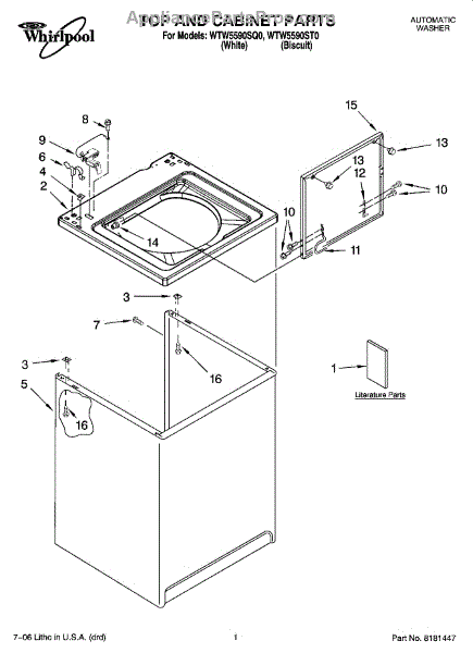Repair manual for top loading automatic direct drive washing machines made by Whirlpool. Covered brands include Whirlpool, Sears, Kenmore, Kitchen Aid, Roper, and Estate. Easy to follow photographs and step-by-step repair procedures.