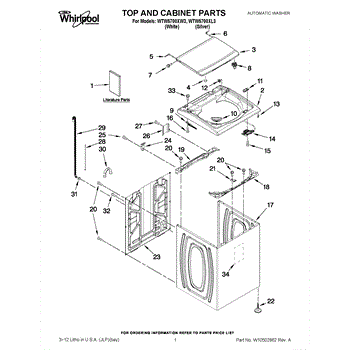 This complete lid assembly replaces a cracked, bent, or missing washer lid so the top-load tub can be securely covered and the appliance can safely operate. Restores a proper closure and helps prevent splashes and loose items from falling out. What it does: