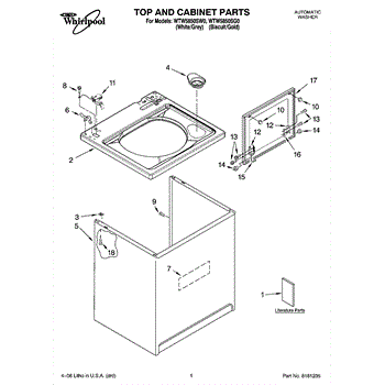 Parts for Whirlpool WTW5850SG0: 01 - Top And Cabinet Parts