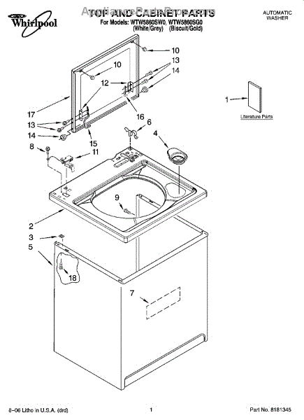 Parts for Whirlpool WTW5860SG0: 01 - Top And Cabinet Parts