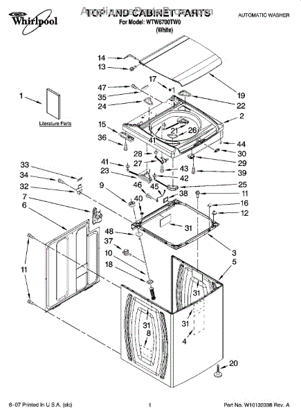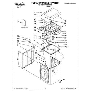 Parts for Whirlpool WTW6700TW0: 01 - Top And Cabinet Parts
