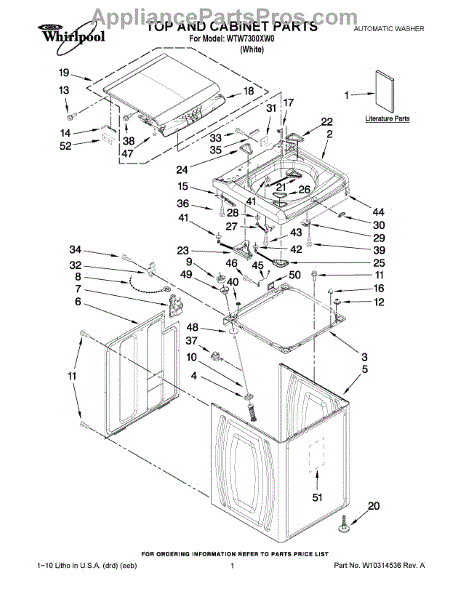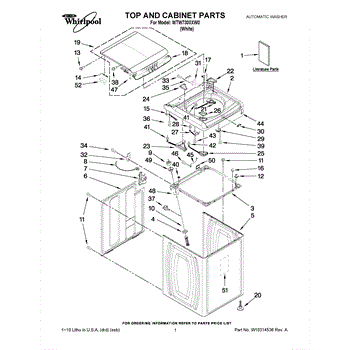 This washer lid assembly covers the tub opening and engages the lid switch for safe operation. Replacing a damaged lid restores proper closure, helps prevent splashing, and ensures spin cycles start when the lid is shut.