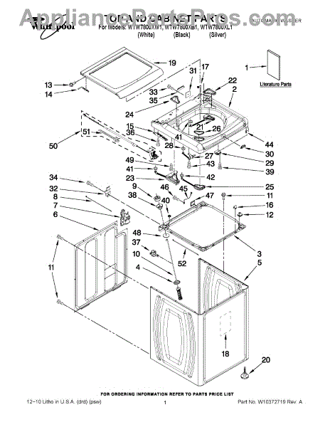 Parts for Whirlpool WTW7800XL1: 01 - Top And Cabinet Parts
