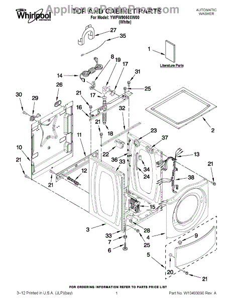 Replace your washer's damaged or rusted cabinet bottom panel. This structural component supports the machine base and requires disassembly to install.