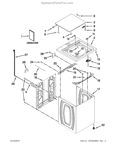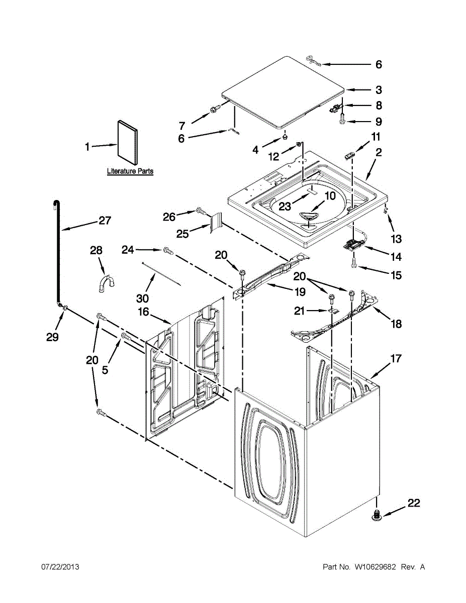 Replacement top for a 27-inch laundry appliance. Restores a secure, finished cover for the cabinet, protecting internal components and improving the appliance's appearance after damage or wear. What it does: