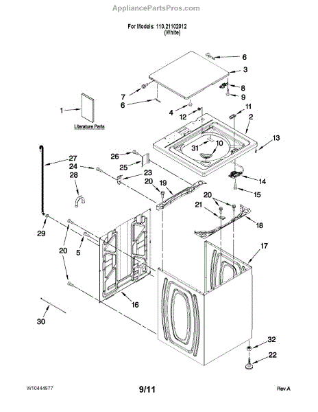 Replacement top for a 27-inch laundry appliance. Restores a secure, finished cover for the cabinet, protecting internal components and improving the appliance's appearance after damage or wear. What it does: