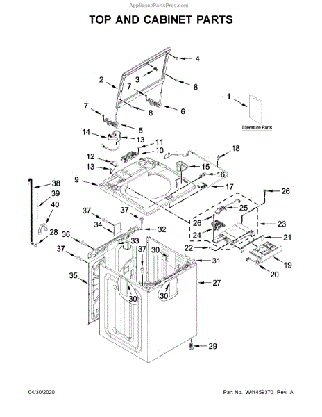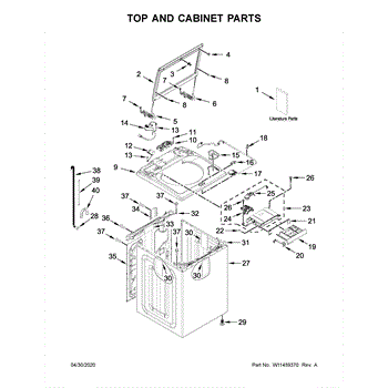 White outer cabinet shell for laundry center units. Replace if cracked, dented, rusted, or damaged. This structural housing encloses washer components.