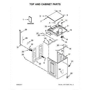 The Top is an OEM part for Whirlpool washing machines. It forms the outer top shell of the washer, providing structure and housing for internal components. The top protects suspension rods, drive motor, controls and other parts while maintaining an attractive aesthetic appearance. It is constructed from durable materials designed to withstand the mechanical stresses of the wash cycle.