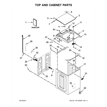 Decorative outer top panel for washing machines. Replaces cracked, scratched, or discolored panels. Restores the finished appearance of your washer.