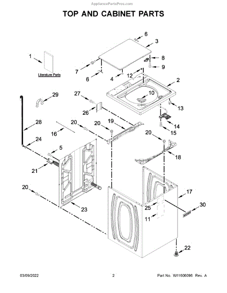 Parts for Maytag MVWC565FW3: Top And Cabinet Parts