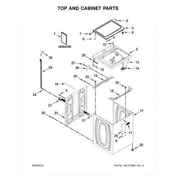 This replacement top panel restores the appliance's upper cabinet surface and provides a stable, finished cover for internal components. It helps protect internal parts from debris and gives your machine a clean, factory appearance. What it does: