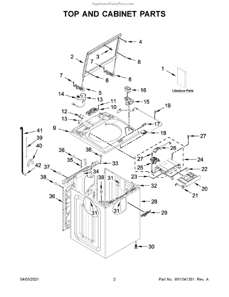 Replacement cabinet wrap assembly for washers. Restores the exterior cover when original is dented, bent, or scratched. Protects internal components.