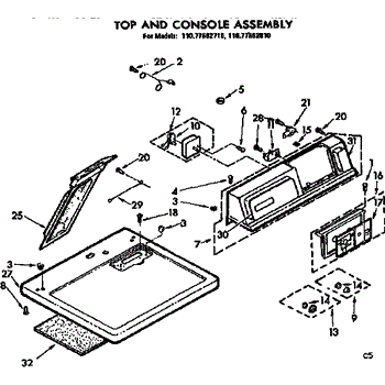 Parts for Sears 11077562710: Top And Console Assembly Parts