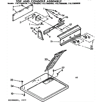 Parts for Sears 11077860100: Top And Console Assembly Parts