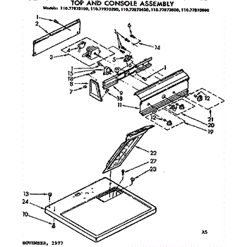 Parts for Sears 11077873200: Top And Console Assembly Parts