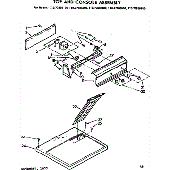 Parts for Sears 11077886400: Top And Console Assembly Parts