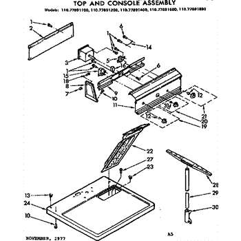 Parts for Sears 11077891200: Top And Console Assembly Parts