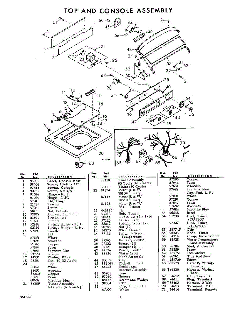 Parts for Whirlpool LSA7805W1: 04 - Top And Console Assembly Parts