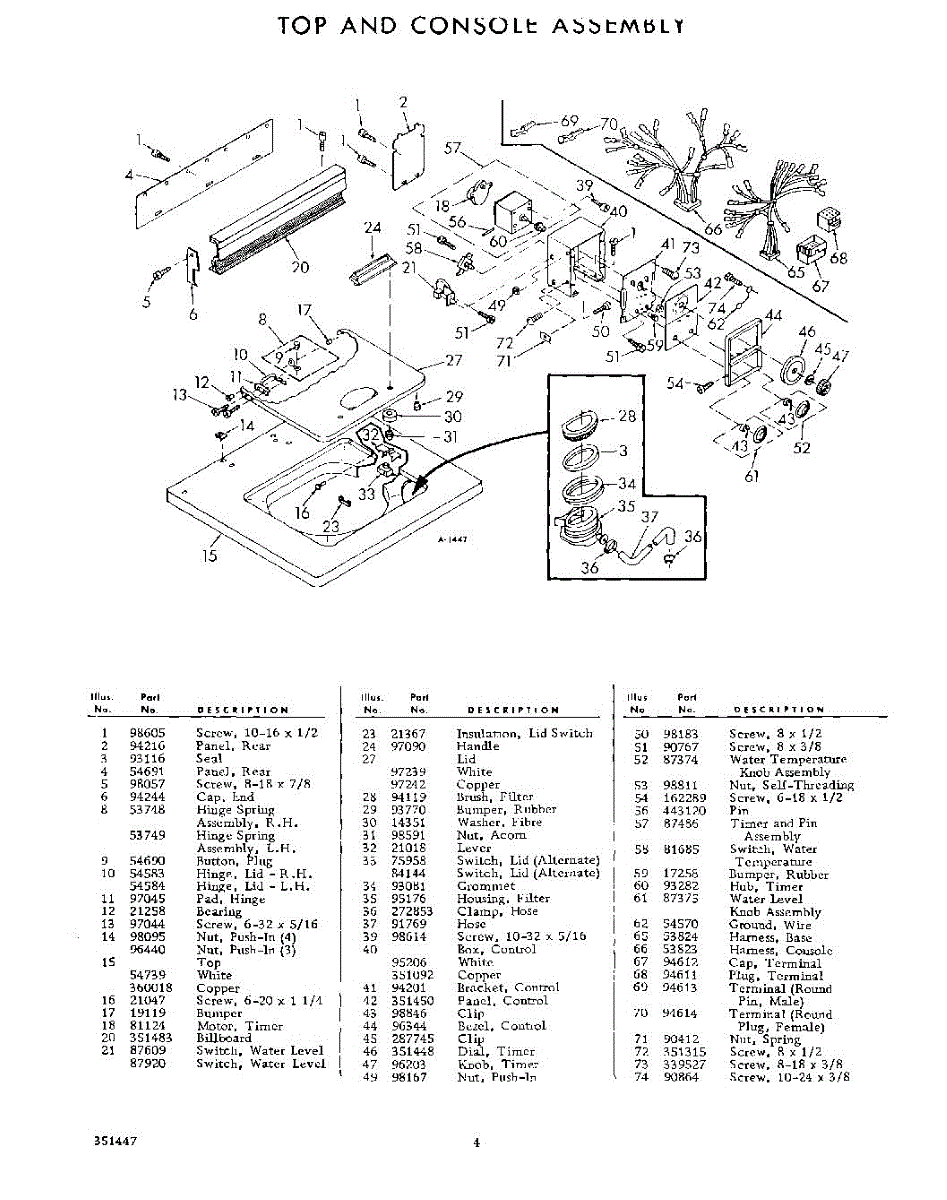 Parts for Whirlpool LSB4640W0: 04 - Top And Console Assembly Parts