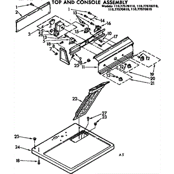 Parts for Sears 11077570110: Top & Console Assm Parts