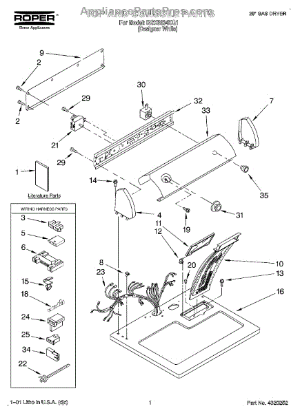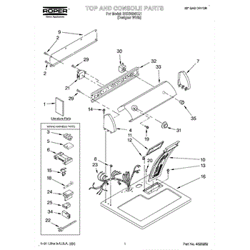 Parts for Roper RGX5634KQ1: 01 - Top And Console, Lit / Optional Parts