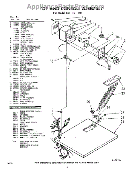 Parts for Whirlpool CDI1101W0: 04 - Top And Console , Lit / Optional Parts