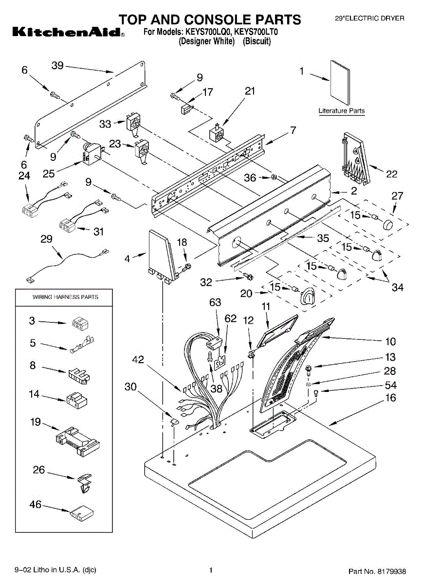 Wire harness assembly that routes power and control signals between dryer components. Replace if wires are damaged, worn, broken, or connections are loose.