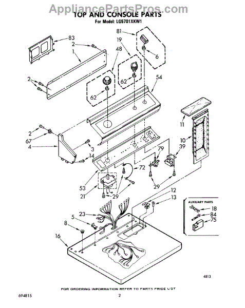Parts for Whirlpool LG5701XKW1: 02 - Top And Console, Lit / Optional Parts
