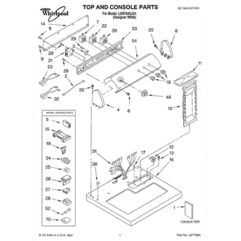 The Dryer Repair Kit is an OEM replacement part for Whirlpool 29-inch large capacity dryer models. It is a kit designed to provide various essential components and hardware needed for common dryer repairs or maintenance tasks.