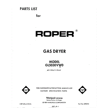 Parts for Roper GL5030VW0: 01 - Top And Console , Literature And Op Parts
