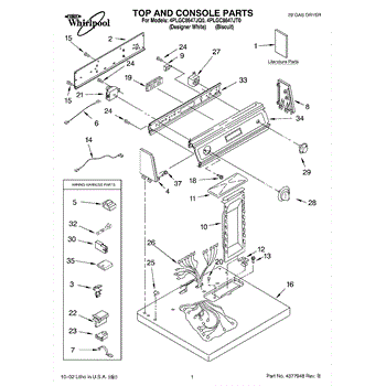 The Dryer Repair Kit is an OEM replacement part for Whirlpool 29-inch large capacity dryer models. It is a kit designed to provide various essential components and hardware needed for common dryer repairs or maintenance tasks.