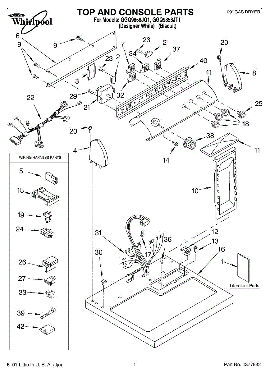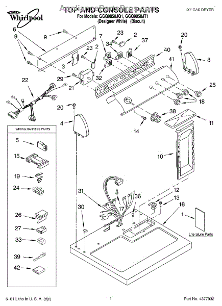 Parts for Whirlpool GGQ9858JT1: 01 - Top And Console, Literature Parts