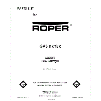 Parts for Whirlpool GL6050VL0: 01 - Top And Console , Literature And Op Parts