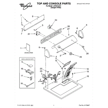 The Lint Screen is an OEM part for Whirlpool dryers. This component is designed to trap lint and debris that are generated during the drying process, preventing them from accumulating in the dryer's vent system. By capturing lint, the screen helps maintain proper airflow, reducing the risk of fire hazards and ensuring that the dryer operates efficiently. This lint screen measures approximately 19 x 7 inches.