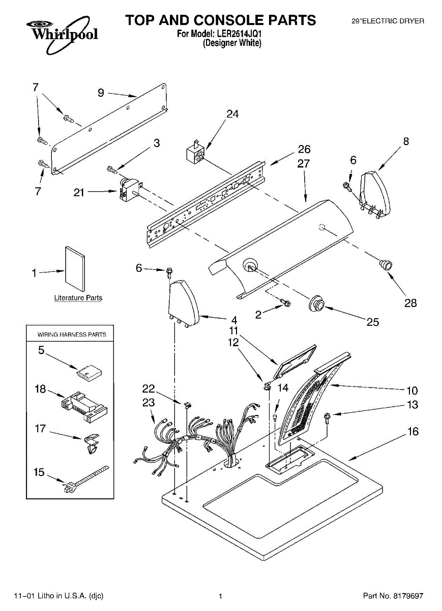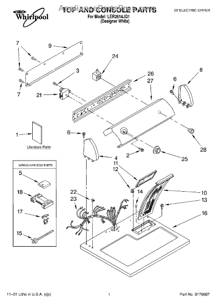 The Dryer Repair Kit is an OEM replacement part for Whirlpool 29-inch large capacity dryer models. It is a kit designed to provide various essential components and hardware needed for common dryer repairs or maintenance tasks.